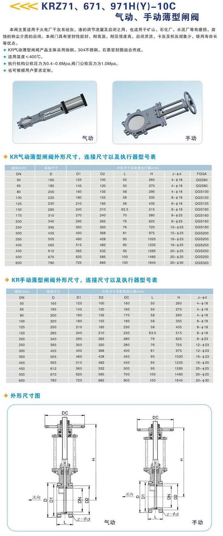 KRZ71、671、971H(Y)-10C氣動、手動薄型閘閥